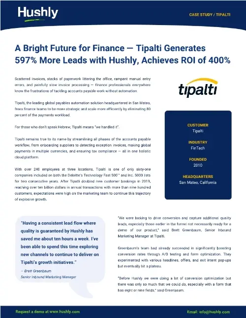 Tipalti achieves 597% more leads with Hushly, ensuring high-quality conversions and a 400% ROI.